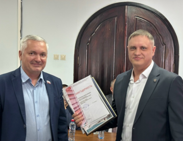 Заседание началось с торжественной церемонии вручения благодарственных писем от организаций и жителей 5 округа депутату Алексею Прозорскому за его активное участие и поддержку различных мероприятий.